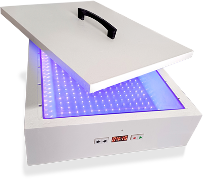 Manglede en UV-belyser - med timer - til når jeg legede med tøjtryk derhjemme. De er dyre og primært til industribrug, så hvorfor ikke bikse en selv?